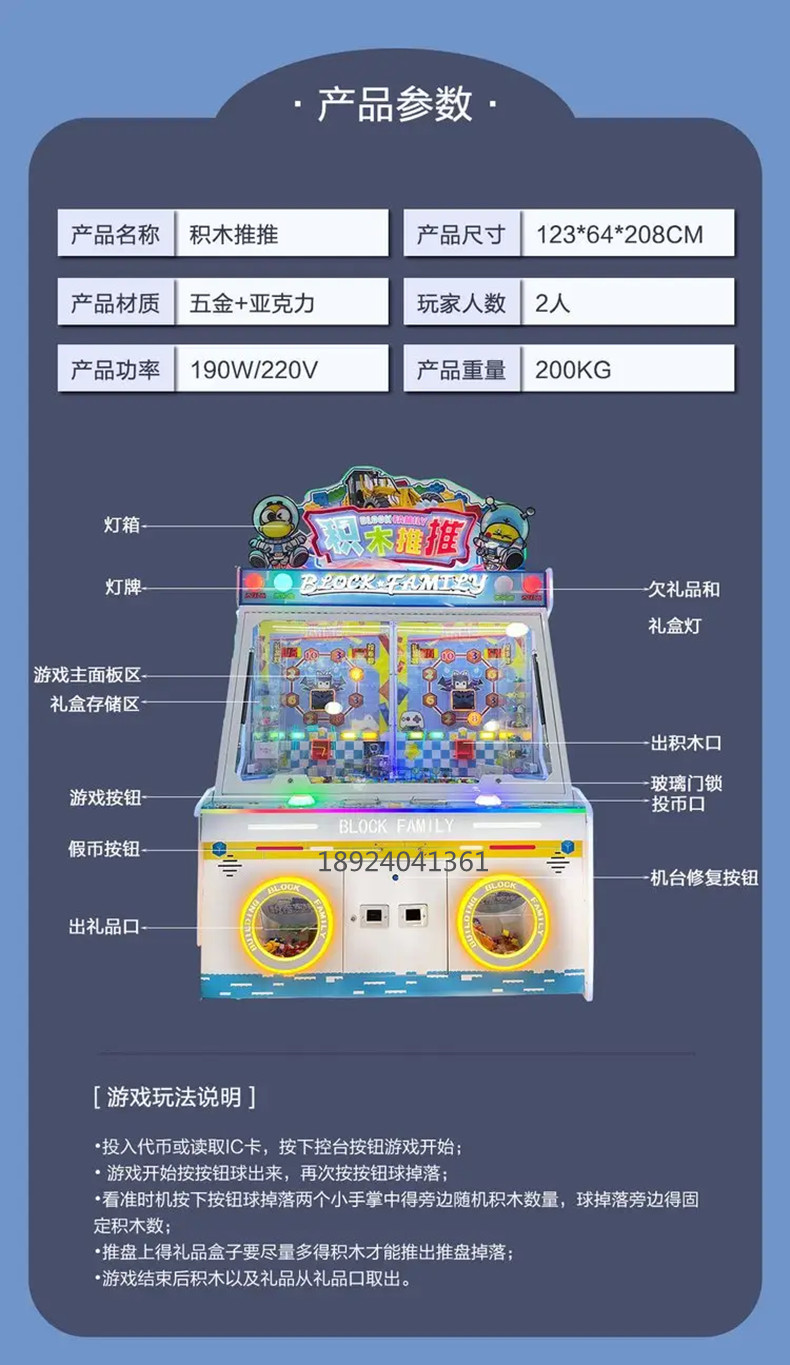 机械类推盲盒积木游戏机儿童积木推推乐礼品机电玩城投币游艺机